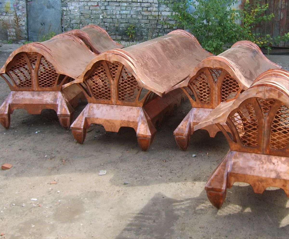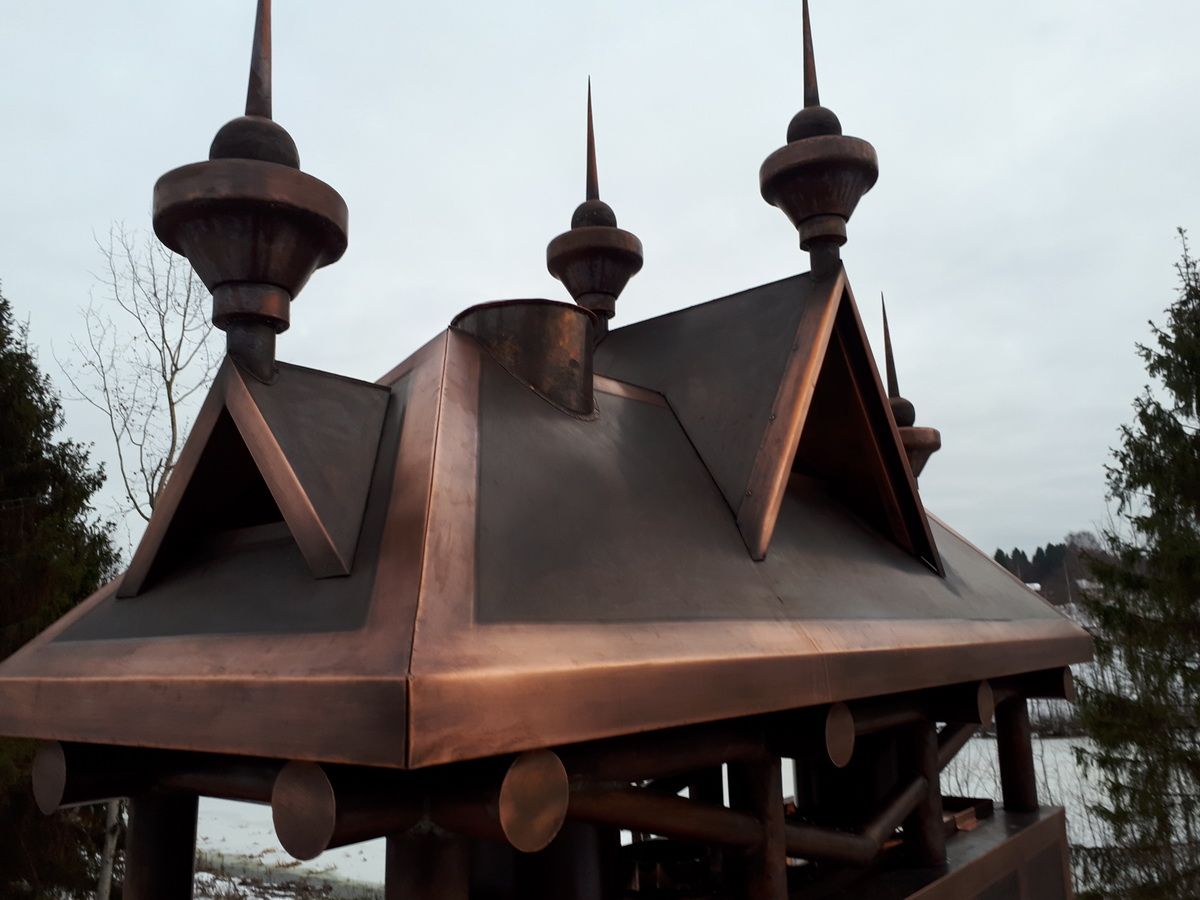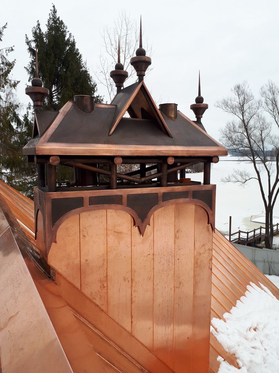 Флюгарки, колпаки, дымники, дефлекторы/ Медь, жестянка, полимерка, и др/ Гибка, Ковка, выколотка, патина, отжиг и т.п./ Архитектурный элемент здания