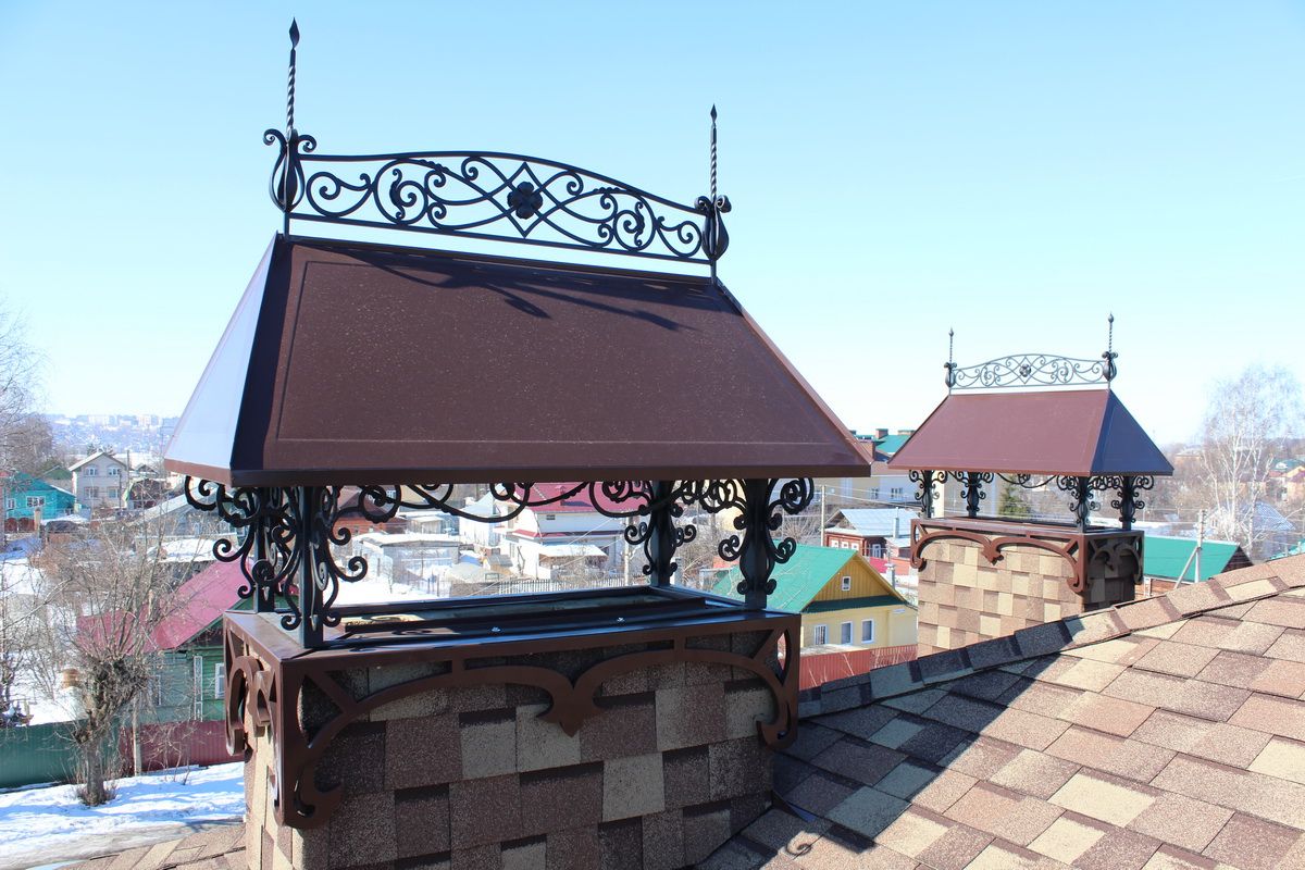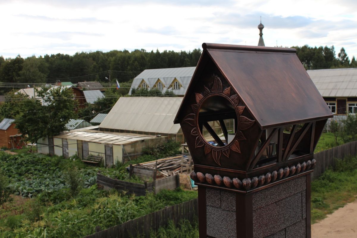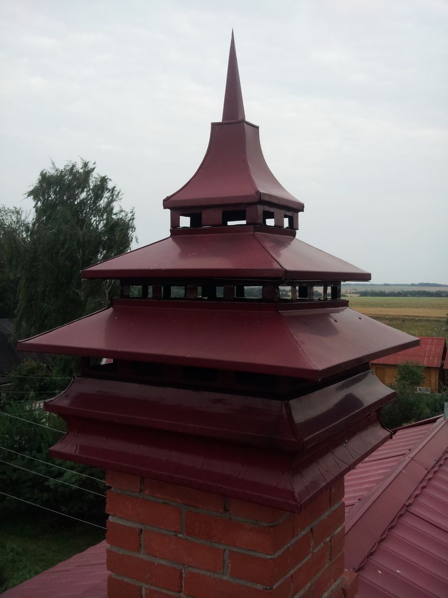 Дымники, колпаки, флюгарки, оголовки, зонты - суть одно - навершие на вытяжной канал или дымоход. Конструкция проста: верхняя часть (зонт, крышка, колпак), прикрепляемая к нижней опорной части (капельник) при помощи стоек. Но функционально данное изделие решает ряд крайне ответственных задач.