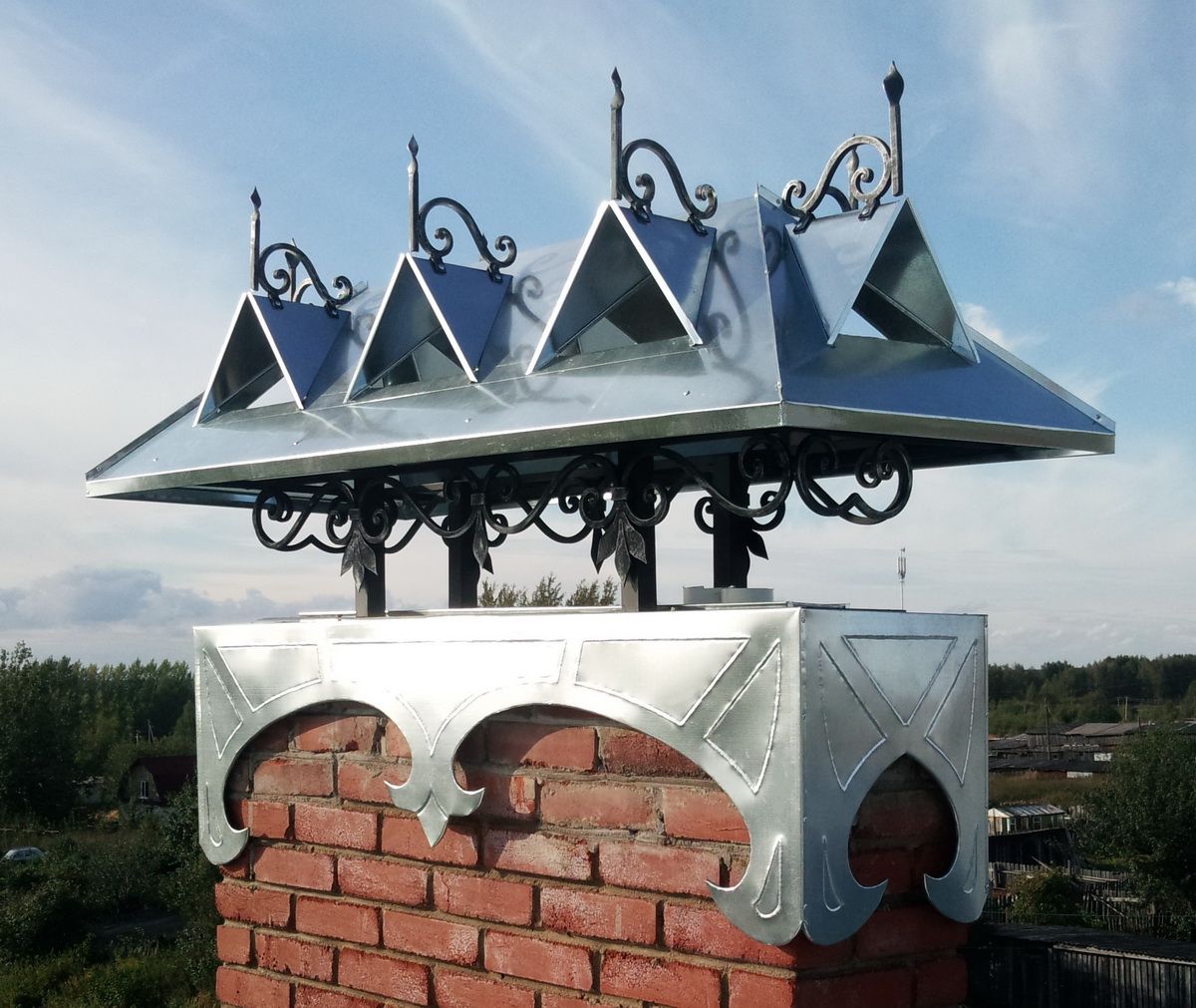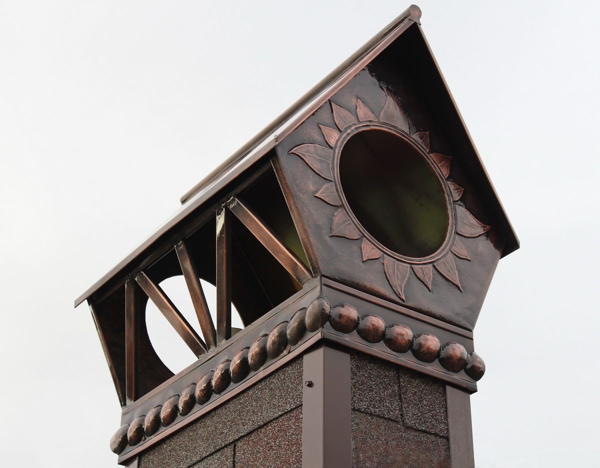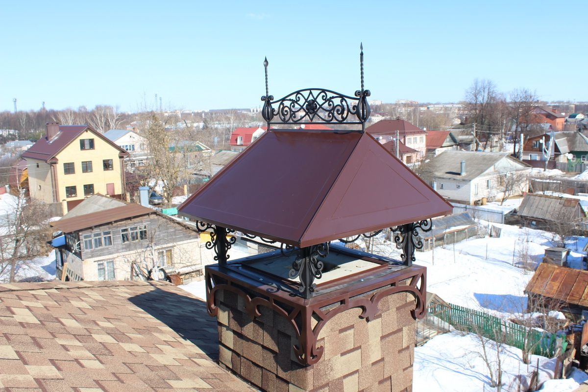 Дымники, колпаки, флюгарки, оголовки, зонты - суть одно - навершие на вытяжной канал или дымоход. Конструкция проста: верхняя часть (зонт, крышка, колпак), прикрепляемая к нижней опорной части (капельник) при помощи стоек. Но функционально данное изделие решает ряд крайне ответственных задач.