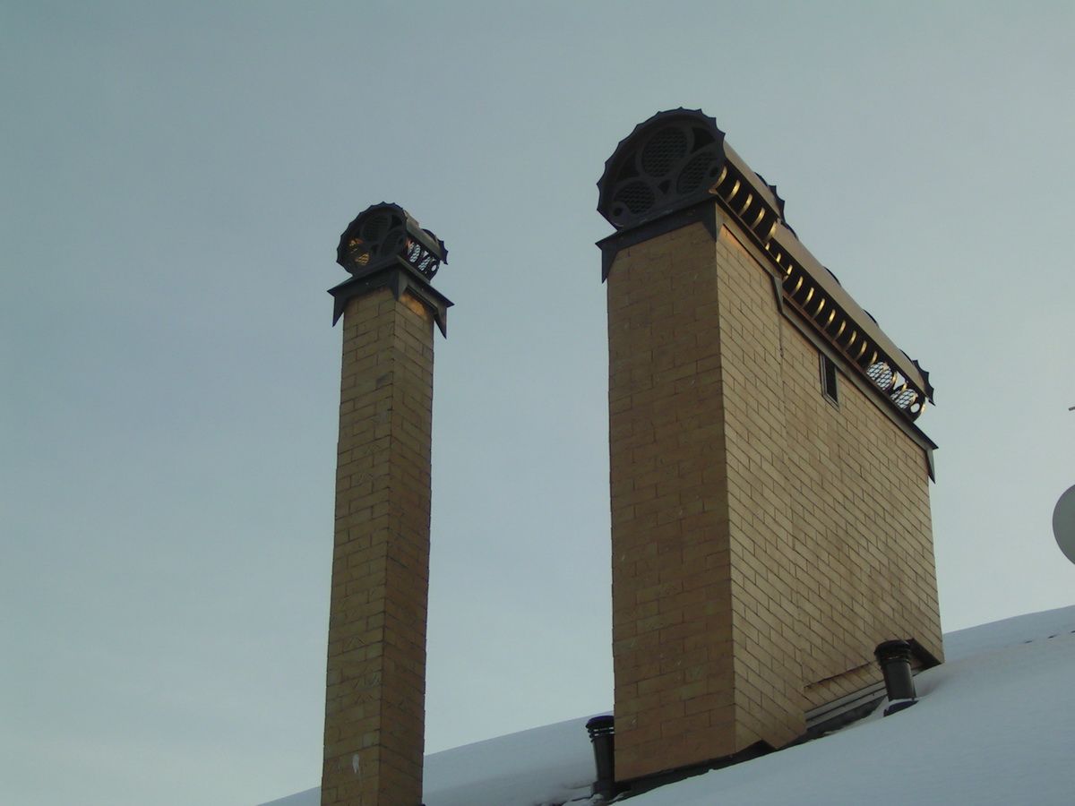 - И конечно же, это фактор украшения всего здания, это ваш стиль, ваша индивидульность, если хотите. Продуманный ансамбль дымников, сочетающийся с общей архитектурой и фактурой кровли, сразу подымает престиж строения.