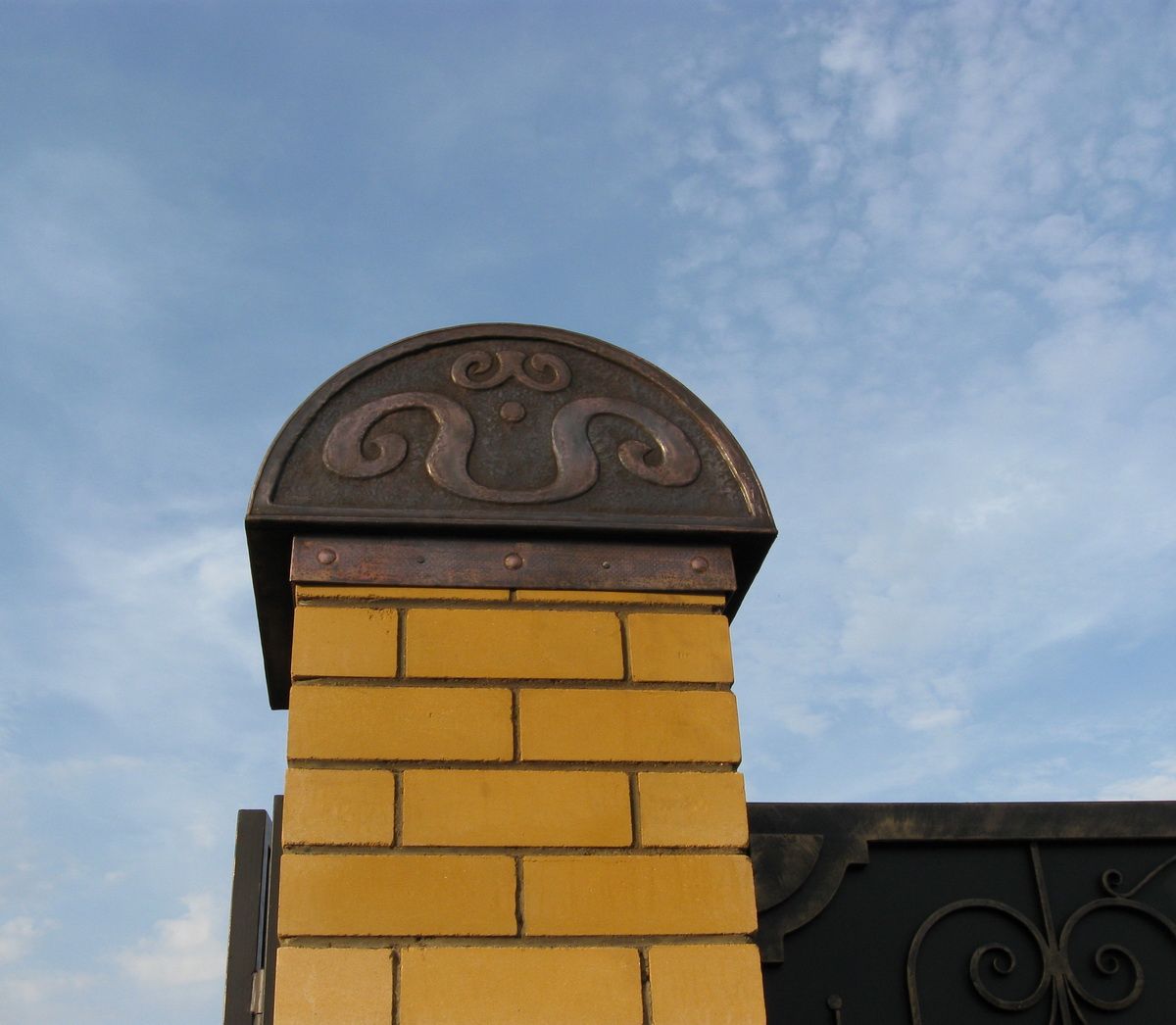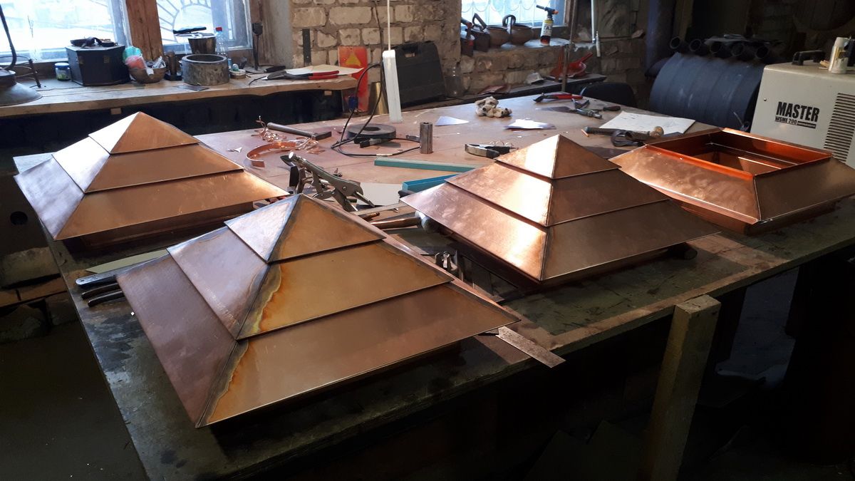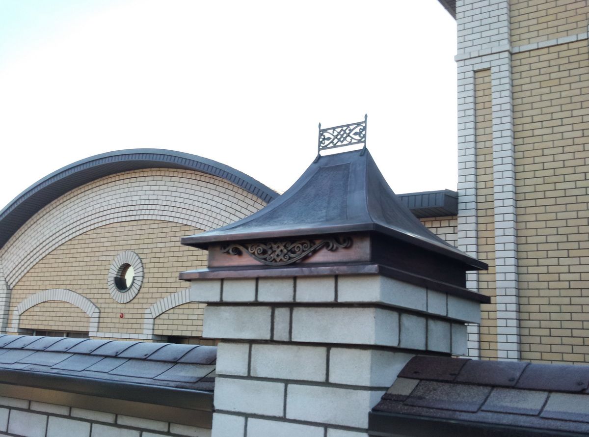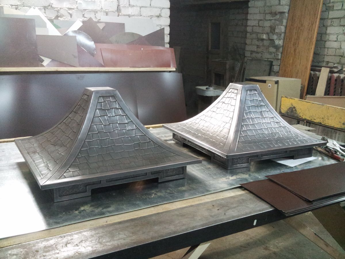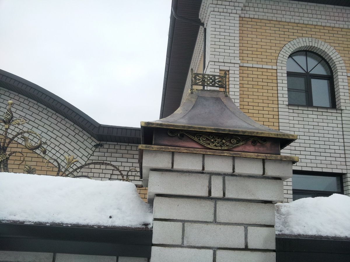 Колпаки, навершия, отливы, парапетные крышки и пр/ Медь, жестянка, полимерка, и др/ Ковка, выколотка, патина, отжиг и т.п./ Архитектурный элемент