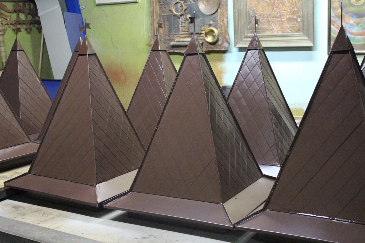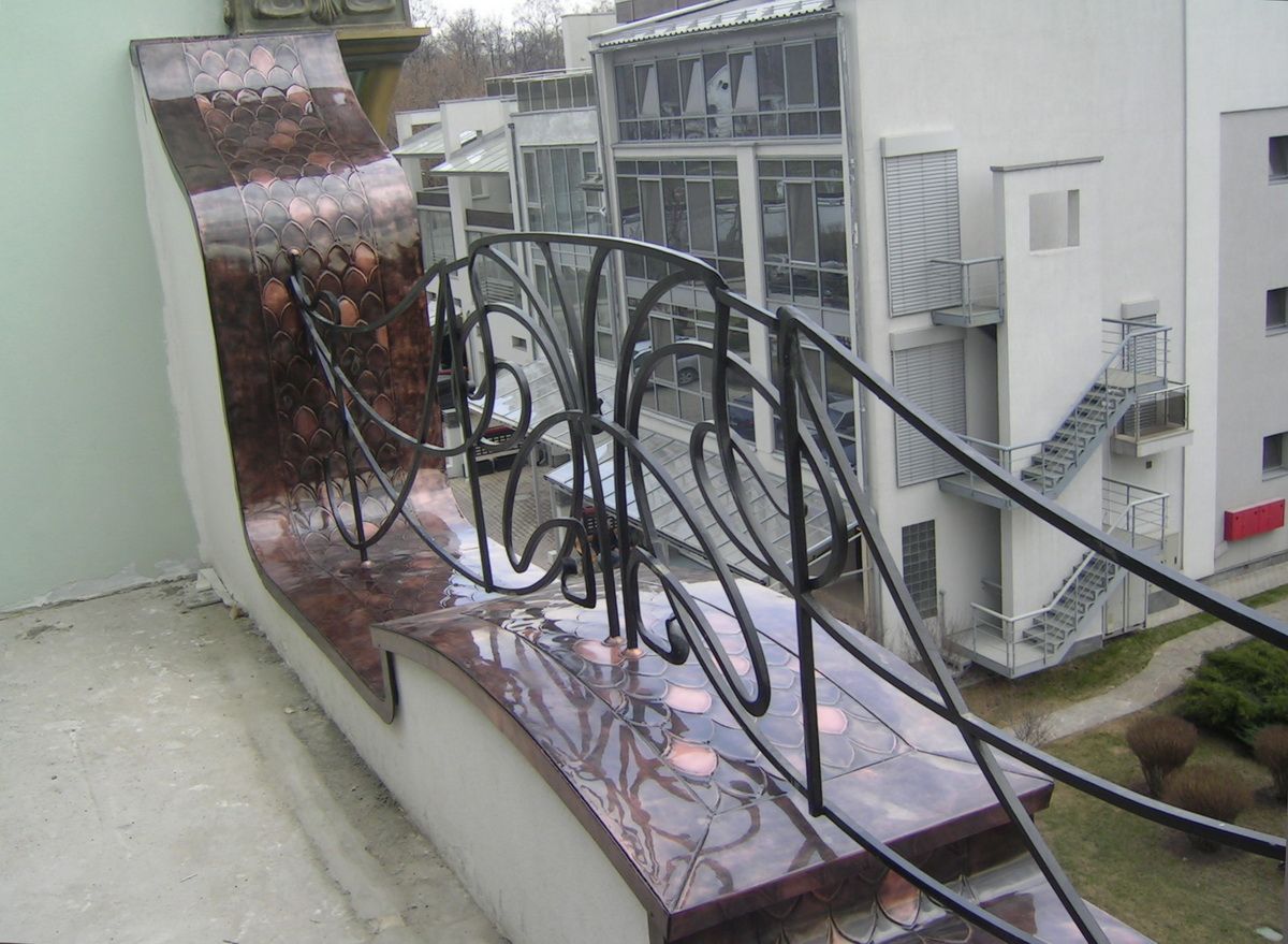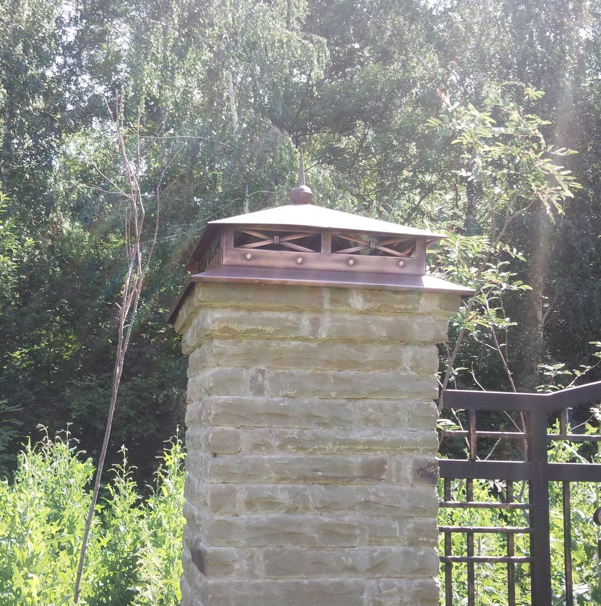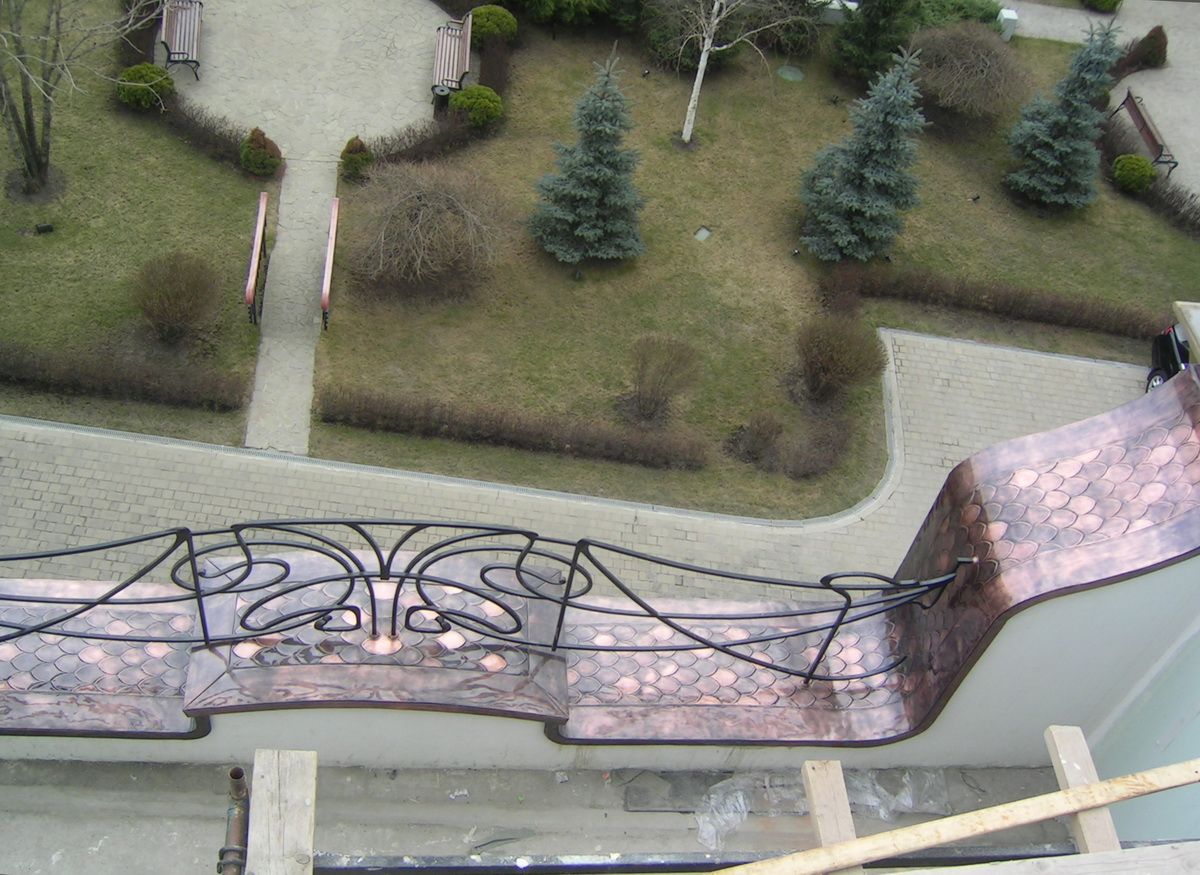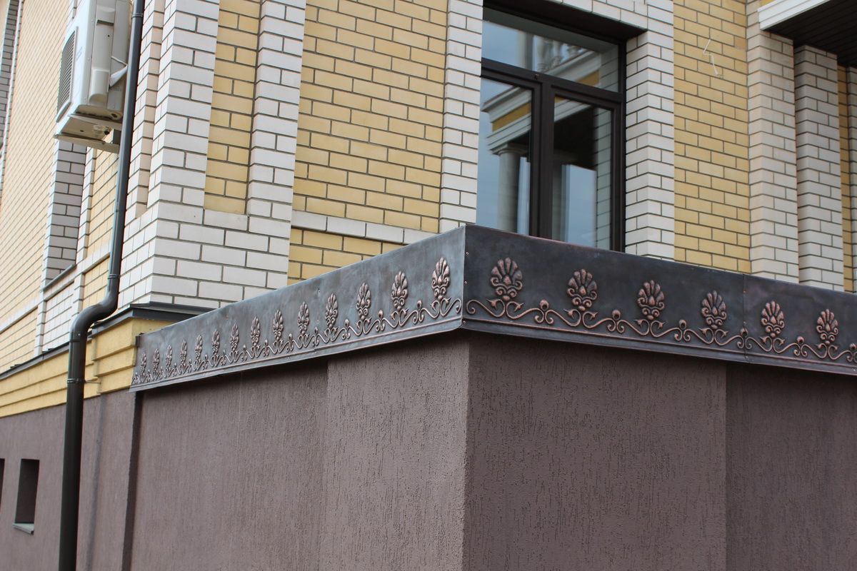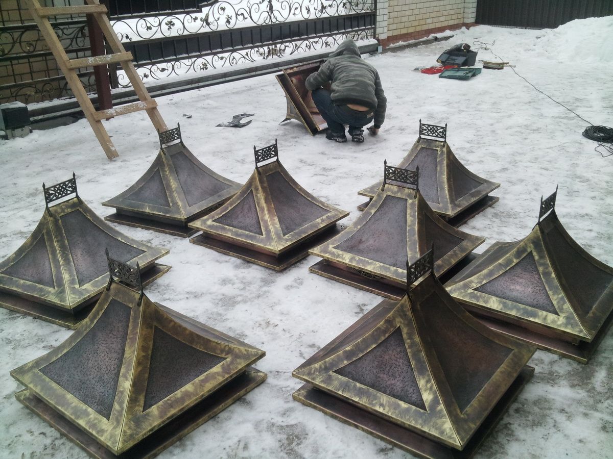 Колпаки, навершия, отливы, парапетные крышки и пр/ Медь, жестянка, полимерка, и др/ Ковка, выколотка, патина, отжиг и т.п./ Архитектурный элемент