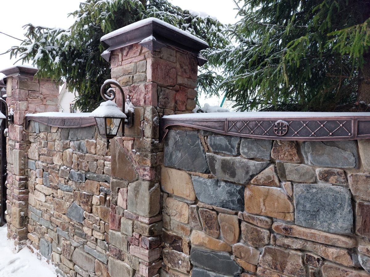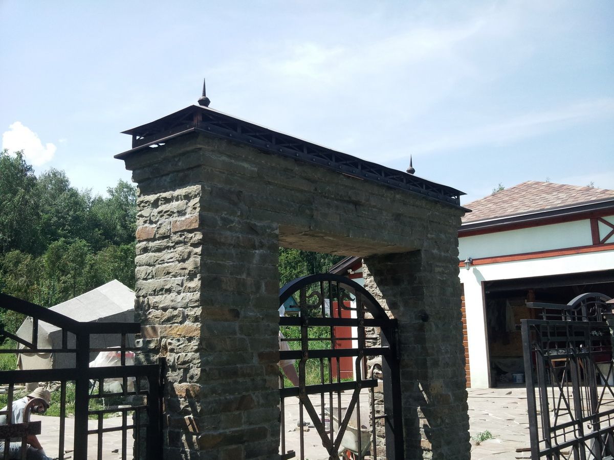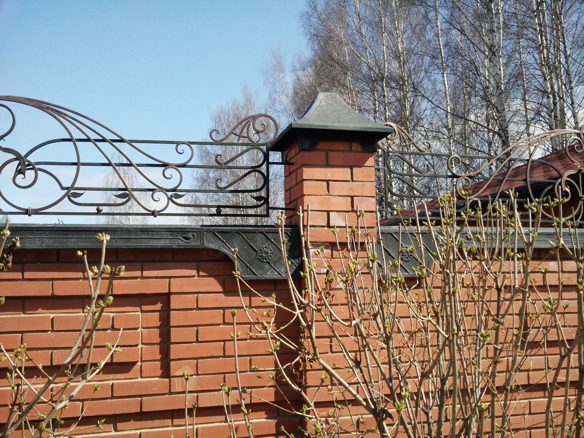 Столбы. Известно, что данные товарищи имеют фундаментную часть (там в недрах), состоят из кладочного тела и гордятся своим верхом. Здесь, есть смысл заглянуть в обзорную статью о дымниках, флюгарках, вытяжных колпаках: смотрите выше предыдущую страницу. Та же история, что и в статье про дымники и флюгарки: Защита верхнего пояса кладки от рассыпания под воздействием суровой в наших широтах внешней среды. Столб без навершия, это как военный без погон, как троллейбус без дуги, как СССР без Пятилетки, а вот увенчанный своим навершием - это уже Ого-го! Да что рассуждать, смотрите ниже на фотоснимках.
